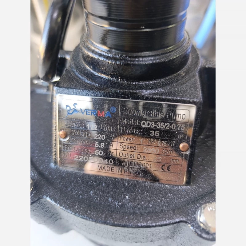 شناور چدنی 35 متری 1 اینچ ورما تکفاز خروجی بالا 1 اسب مدل QD3-352-0-75-کف کش کمرکش بدنه چدن تنه باریک یک اینچ